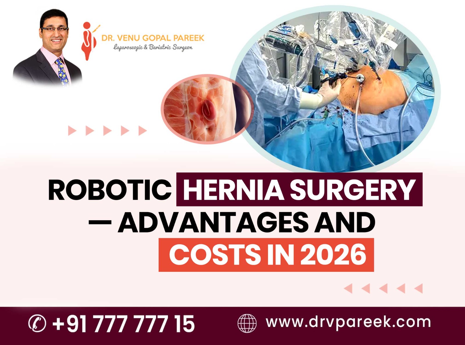 Dr. Venugopal Pareek, one of the best robotic hernia repair surgeons in Hyderabad, mentioned during consultation that patients ask numerous questions, such as “Sir, we need robotic surgery, but I am very concerned about its being so expensive. Will I be able to have robotic surgery? Does insurance cover robotic hernia surgery?” Before going into the details of the robotic hernia surgery cost, let us first find out why this surgery is more costly than a standard laparoscopic operation.